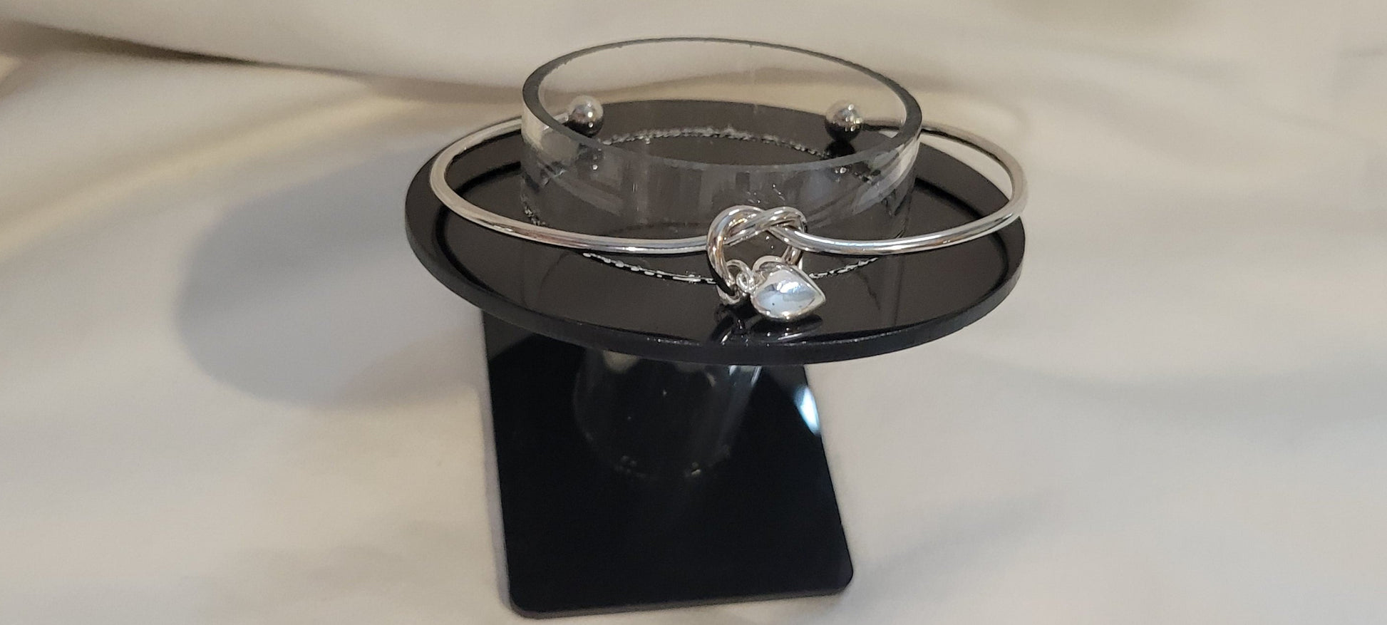 This 14k filled cuff bracelet features a delicate knot design and enamel heart charm. The high quality material and intricate detailing make it a stylish and timeless addition to any jewelry collection. The perfect gift for someone you love. Your love will forever be tied together.