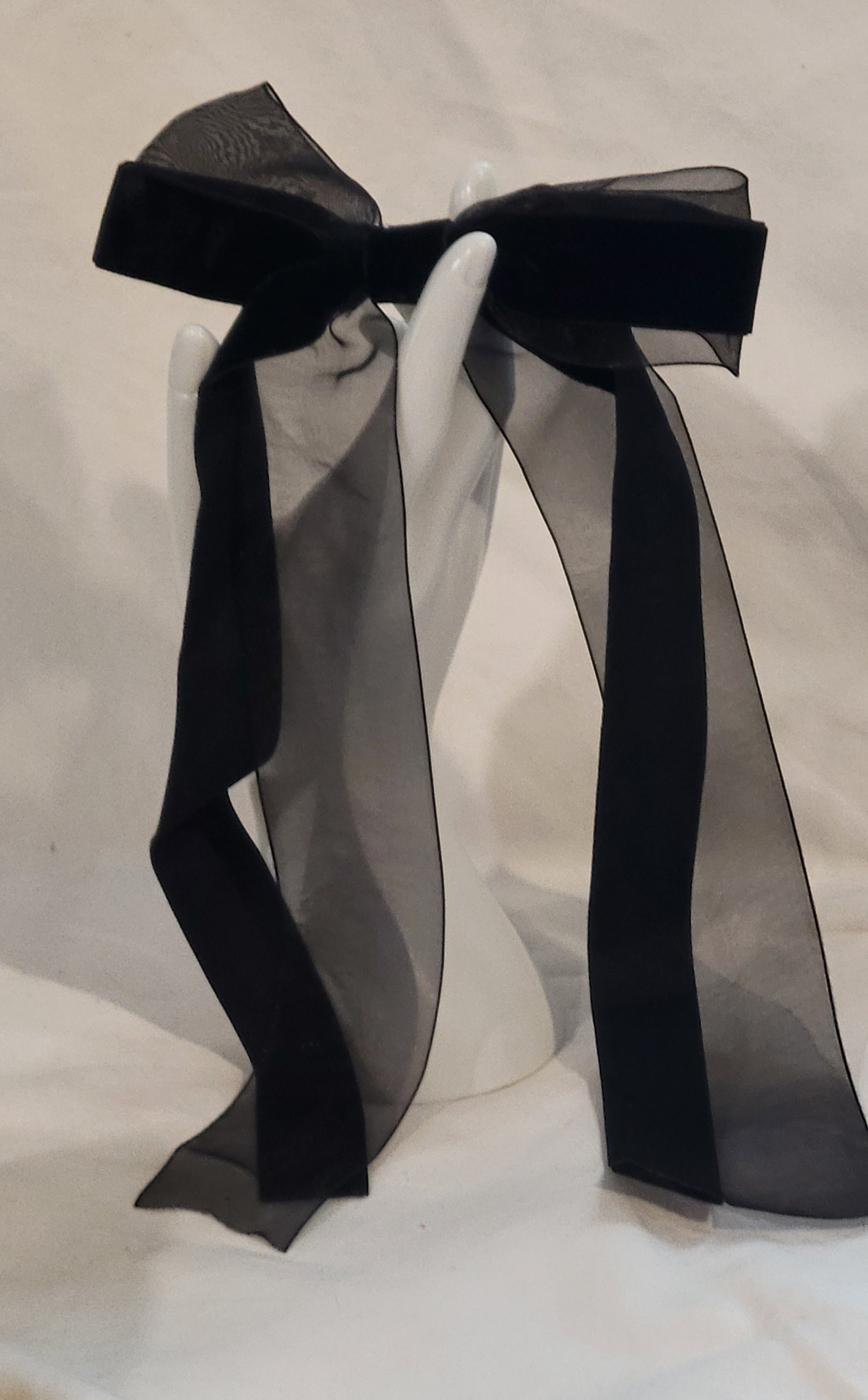 Expertly crafted by hand, our Black Hairbow & Scrunchy set is the perfect addition to any hair accessory collection. With elegant black tones, each piece adds a touch of sophistication to any hairstyle. Handmade with precision and care, this set is sure to elevate your look.