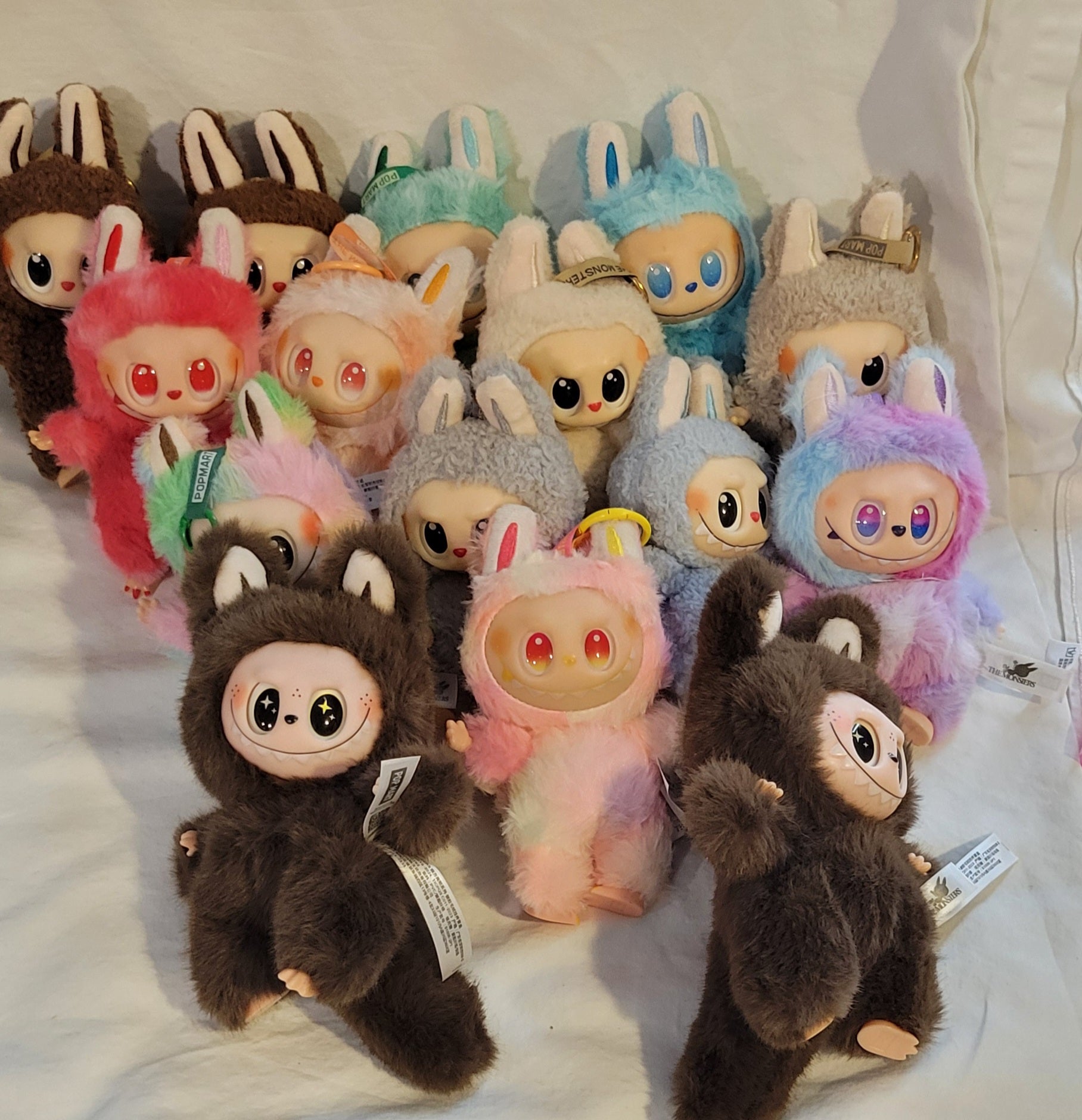 For Lafluflu lovers! The stuffed plushy, tote, key ring, bag chain, phone stand/mirror, phone chain, and stuffed fluflu head. Just pick from the available fluflu colors below and we will make every effort to match the other items. We are limited to what is in stock.