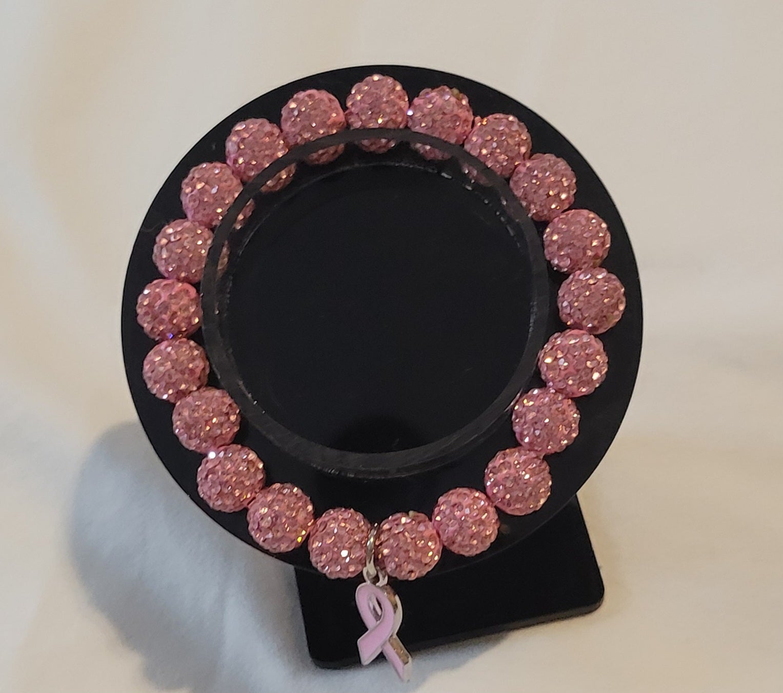 Celebrate and support breast cancer awareness this October with our handmade pink clay sparkle beads. Each piece is carefully crafted and unique, adding a touch of beauty to any outfit. Join us in spreading awareness and hope with our bling collection.