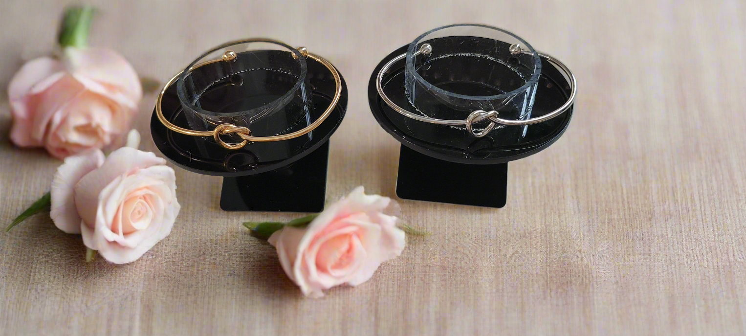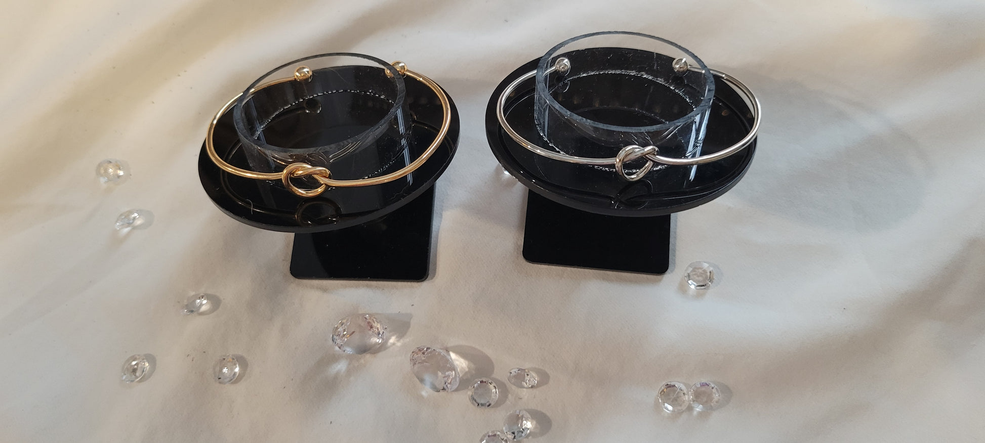 Say "thank you" to your bridal party with these beautiful tie the knot bracelets. Available in 14k pl or silver packaged with your message of thanks. These can be purchased in sets of 5. Just pick gold or silver.